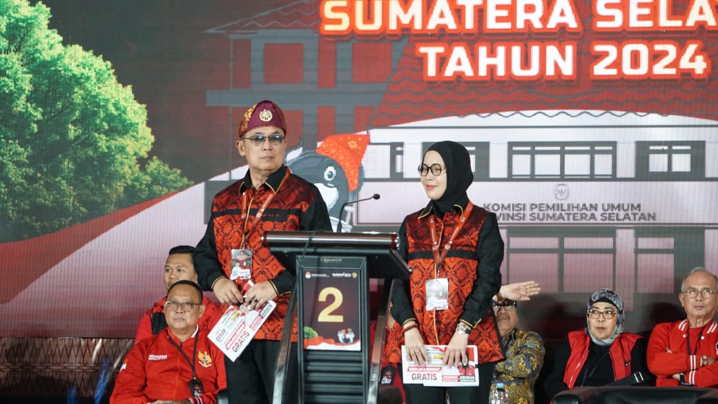 Hasil pengundian dan penetapan nomor urut perserta Pemilihan Gubernur Sumatera Selatan 2024, pasangan Ir. H. Eddy Santana Putra, MT-Dr. Riezky Aprilia, SH, MH mendapatkan nomor urut 2.