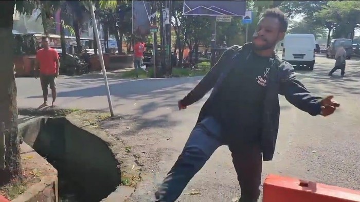 Peristiwa ini sontak menyita perhatian warga yang melintas, sebab mahasiswa itu terlihat marah dan menendang pembatas jalan (water barrier) sebagai bentuk ketidakterimaan atas tindakan yang diambil oleh petugas kepolisian.