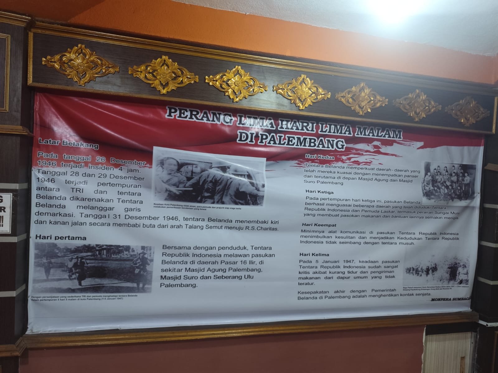 Tak ketinggalan, pengunjung juga dapat melihat foto Gubernur pertama Sumatera Selatan yang turut terlibat langsung dalam peristiwa Perang Lima Hari Lima Malam, menegaskan bahwa perlawanan saat itu melibatkan berbagai elemen masyarakat dan pemerintahan daerah.