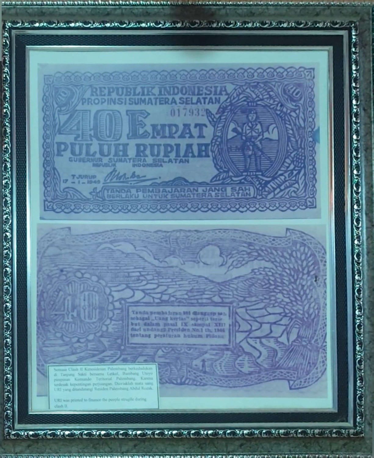 Salah satu koleksi menarik adalah mata uang khusus Sumatera Selatan yang ditemukan pada tahun 1949, yang hanya berlaku selama dua tahun, dari 1949 hingga 1952, dan menjadi simbol kemandirian ekonomi daerah pada masa awal kemerdekaan.