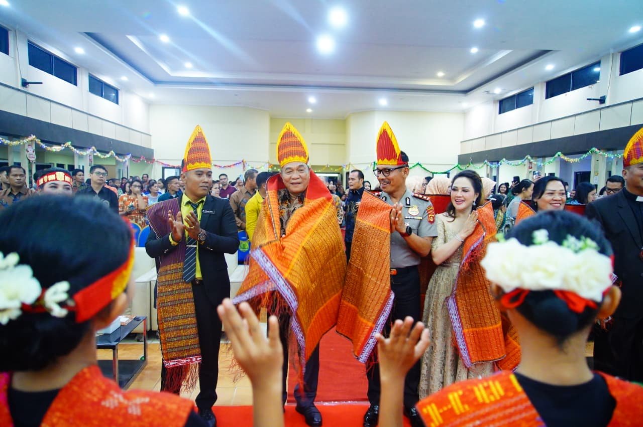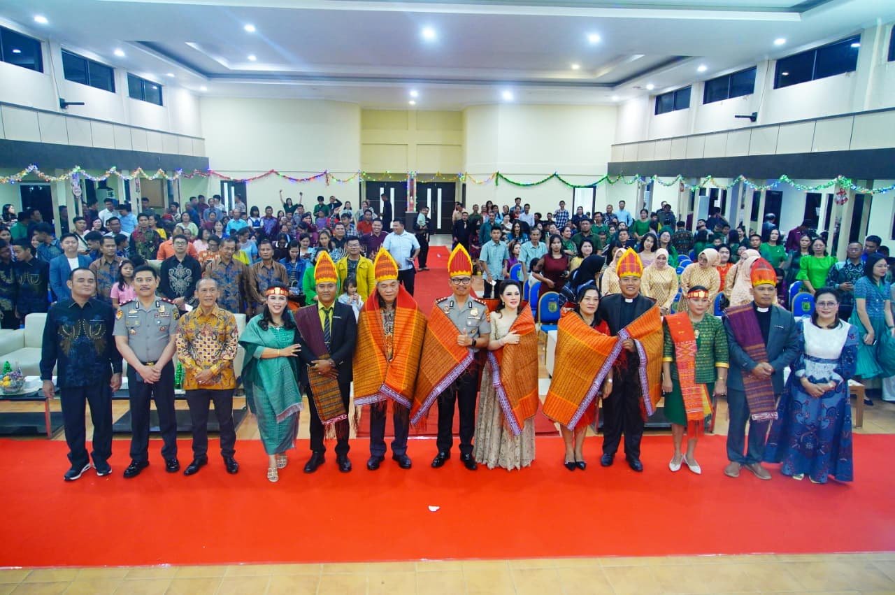 MUSI BANYUASIN, Beritasriwijaya.com – Suasana khidmat dan penuh kehangatan menyelimuti Gedung Dharma Wanita Sekayu pada Rabu malam (17/12/2025). Ratusan jemaat Gereja Protestan Injili Nusantara (GPIN) Serasan Sekate berkumpul dalam sukacita merayakan Natal tahun 2025. Kehadiran Bupati Musi Banyuasin, H.M. Toha Tohet, S.H., bersama jajaran Forkopimda menjadi simbol kuatnya toleransi beragama di Bumi Serasan Sekate.