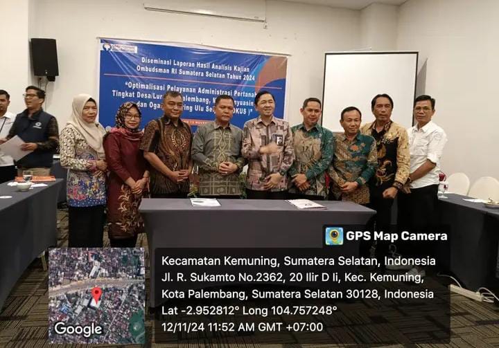 Penyerahan ini merupakan tindaklanjut hasil Kegiatan Kajian Pencegahan Maladministrasi Ombudsman RI Provinsi Sumatera Selatan Tahun 2024 dengan tema “Optimalisasi Pelayanan AdministrasiPertanahan Tingkat Desa/Lurah di Palembang, Musi Banyuasin (MUBA) dan Ogan Komering