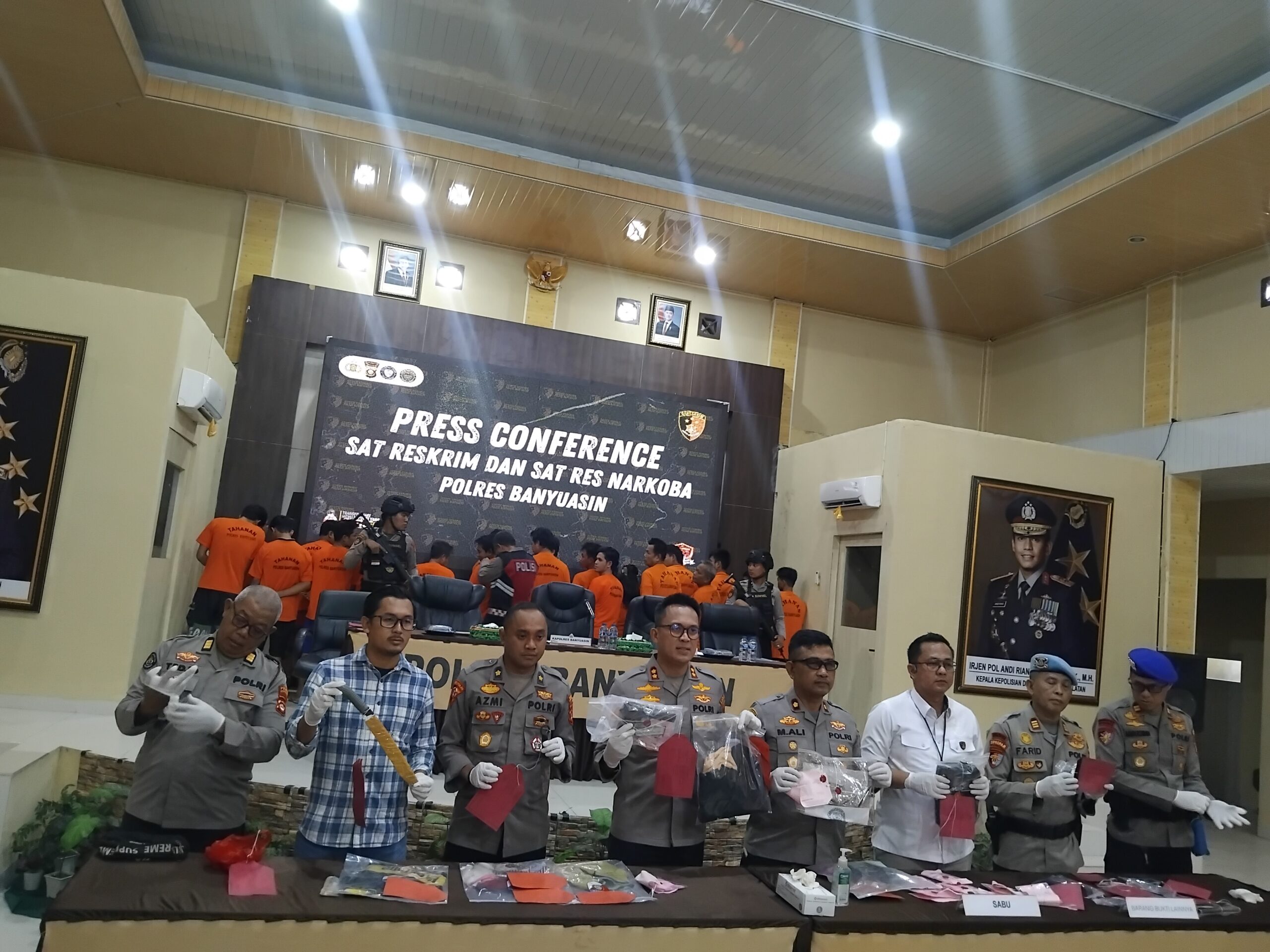 BANYUASIN, Beritasriwijaya.com — Polres Banyuasin merilis capaian pengungkapan kasus selama bulan Juni 2025. Tak kurang dari 24 kasus berhasil diungkap jajaran Polres dan Polsek, mencakup tindak kriminal umum hingga peredaran narkoba. Dari total kasus tersebut, 15 kasus di antaranya adalah perkara narkotika dengan 16 tersangka diamankan.