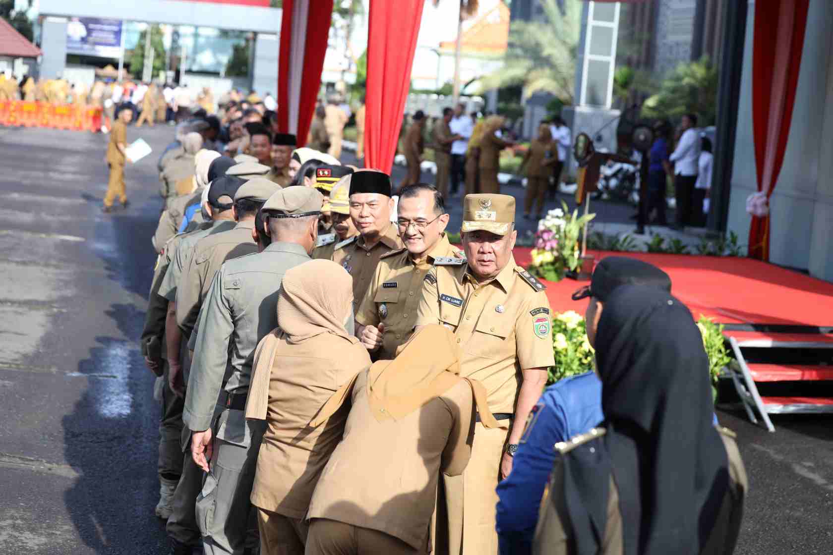 Usai apel, Wagub didampingi Sekda dan para kepala OPD berjabat tangan dengan seluruh ASN dan non-ASN sebagai bagian dari tradisi halal bihalal, menandai semangat kebersamaan dan kekeluargaan dalam menjalankan tugas pelayanan publik. (#)