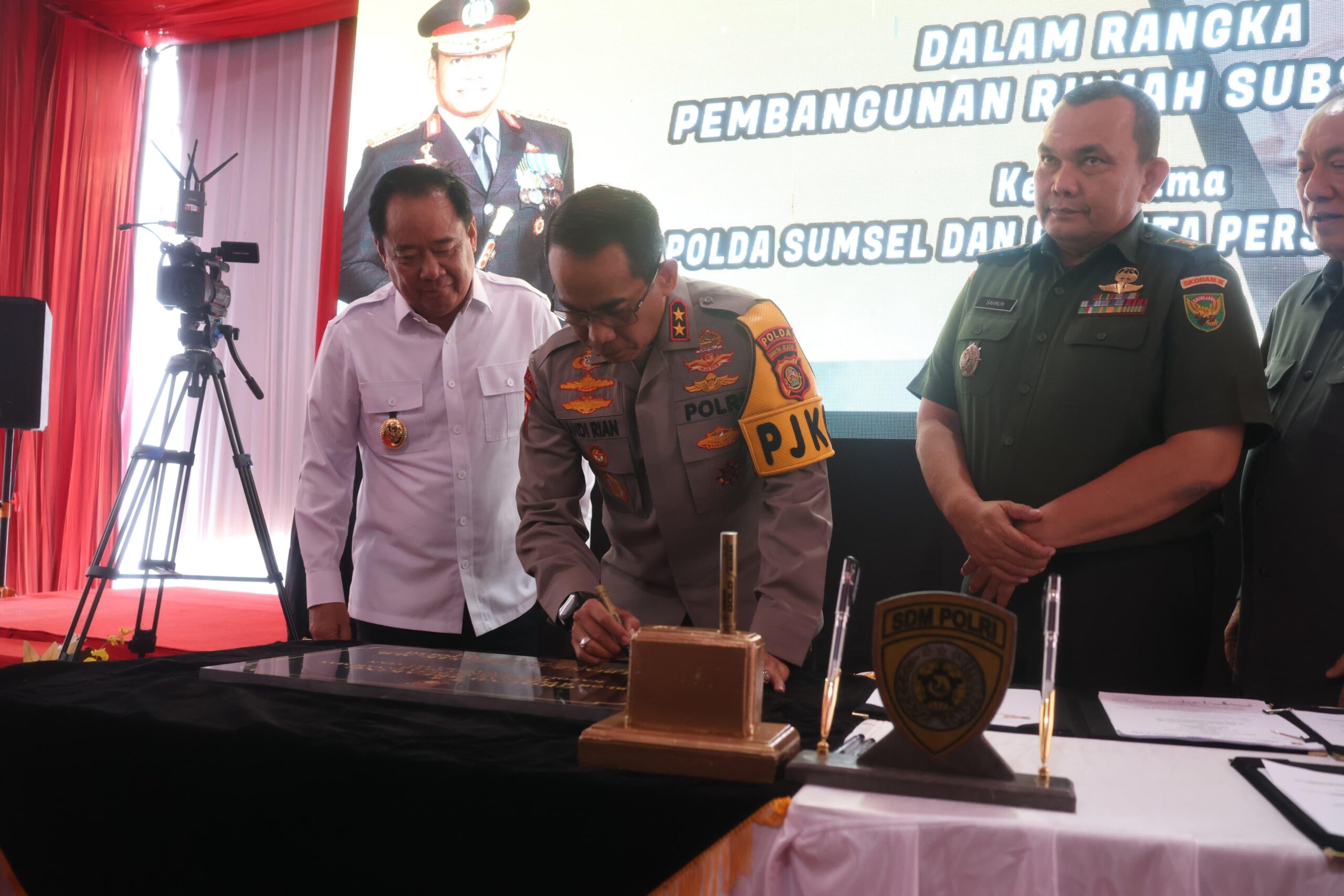 Sementara itu, Kapolda Sumsel, Irjen Pol Andi Rian Djajadi menyebut, Polri terus melakukan upaya dalam mendukung segala bentuk program pemerintah. Salah satunya program prioritas nasional yakni menjamin pembangunan rumah berkualitas dan terjangkau yang bercinta baik untuk masyarakat pedesaan/perkantoran yang membutuhkan.